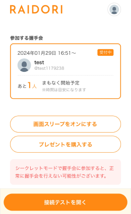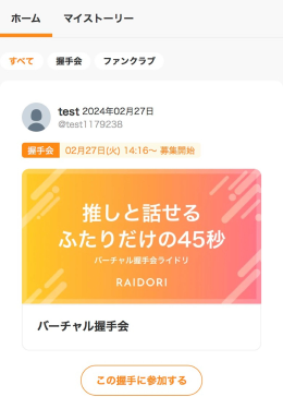 開催日当日になったらライドリを開き握手会を開始しましょう。先頭に並んでいるファンから繋がります。