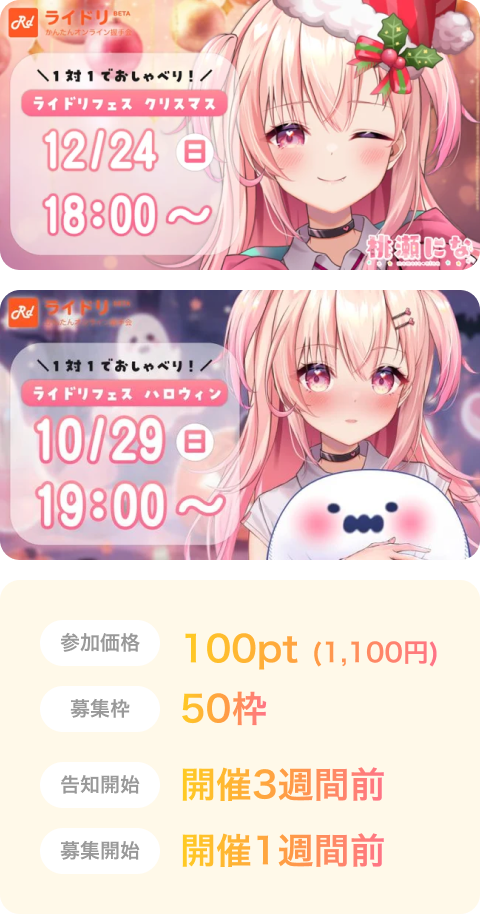 誕生日やクリスマスなどの特別なタイミングや配信終わりなどにファンとお話したいときにパッと開催することでもきます。